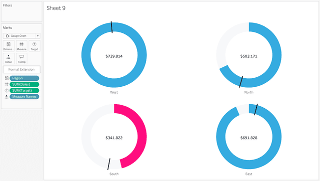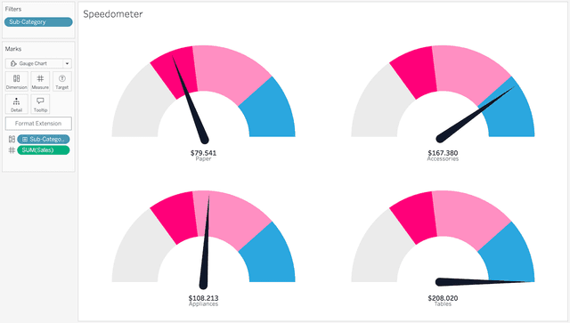 Gauge Chart is part of the Show Me More extension collection for Tableau.