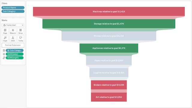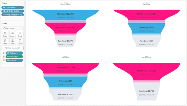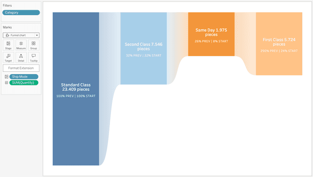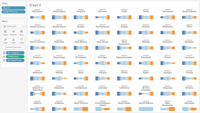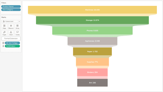 Funnel Chart is part of the Show Me More extension collection for Tableau.