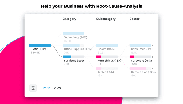 A DrillDownTree é uma ferramenta valiosa para exploração ad hoc pelos usuários do painel e realização de análises de causa raiz nos seus Tableau Dashboards. Ela contribui muito para o autoatendimento dos usuários do painel de uma forma autoguiada fácil e compreensível.