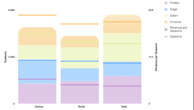 - Stacked Bars: Visualize composition with a secondary breakdown dimension.